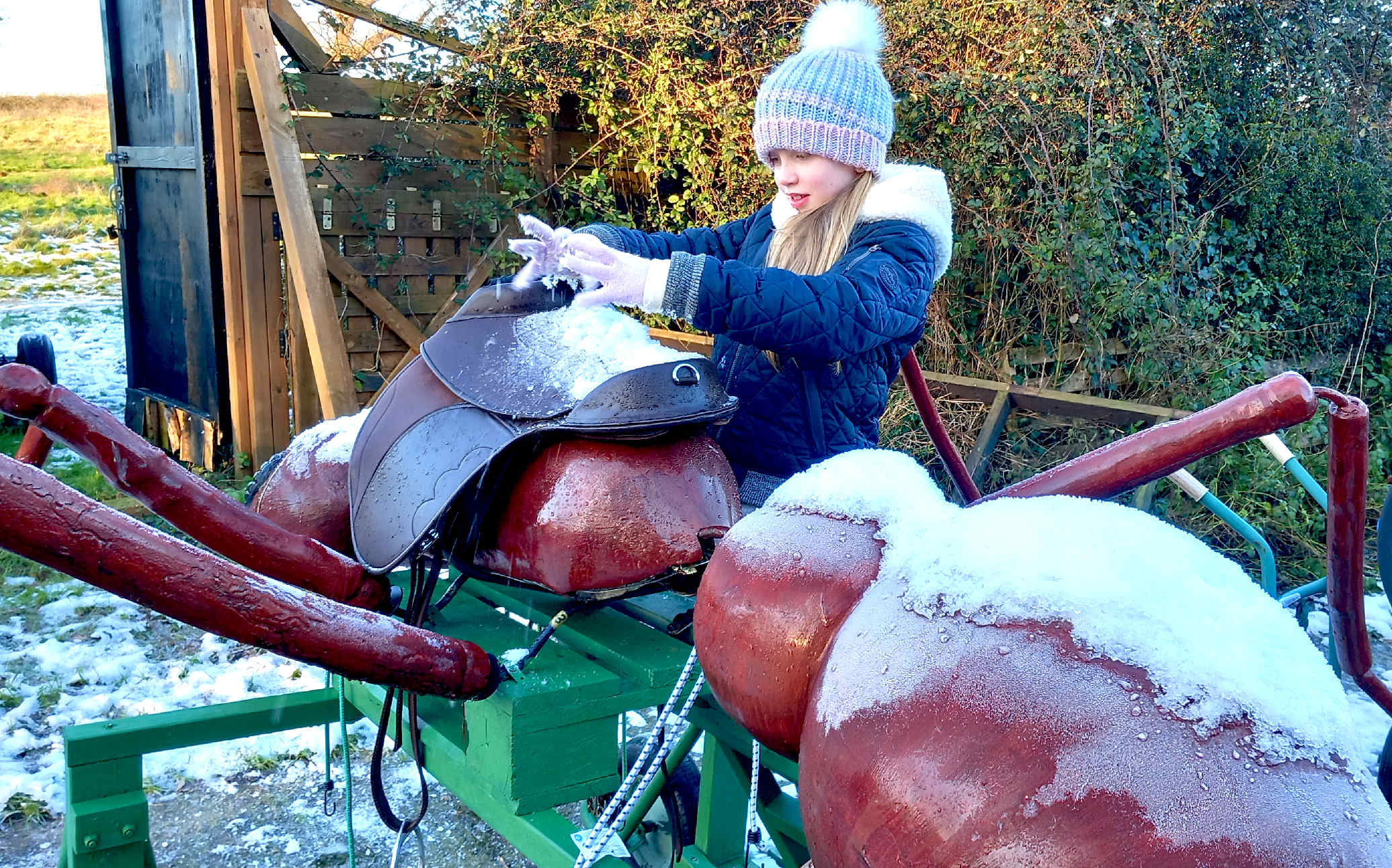 Is this the world's largest insect? Anthony the giant 'Bulldog' ant is seen here at the entrance to the Museum, with a young volunteer (Miss Ocean) helper - who actually worked on the cart that Anthony sits on. 'Miss Ocean' is a conservationist, keen on the country and rewilding. She also hates ocean plastic, that hurts humpback whales & dolphins. And is worried about climate change that is warming the planet globally by burning fossil fuels that make greenhouse gases. In Wealden 47% of CO2 comes from transport, with another 35% from housing. Yet, despite declaring a Climate Emergency, sustainable timber flatpacks are non existent in the District, as are charging points for EVs on newbuilds or along the high streets and in car parks. Two obvious ways of lowering carbon footprints. We actually had snow in Herstmonceux January 2025.