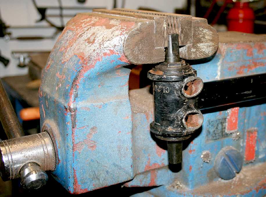 ROBOT NECK - The crankshafts ends have been cut down and re-threaded. This is difficult because the shaft is case hardened - so we'd not recommend you attempt modification. We needed to use the chop saw and angle grinder to rework this bearing for our vertical movement. Don't forget to disassemble the bearings and wash in thinners to remove any grit from the blacksmithing, then pack with fresh grease and adjust. We have built in provision for a swivel neck, but will only be using two of the three-axis design for the head. The next part to make is the bracket to join with the horizontal bearing. We may need to slightly alter the angle of neck bearing. We'll only be able to see if adjustment is necessary with the head artwork fitted - the movement needs to look authentic.