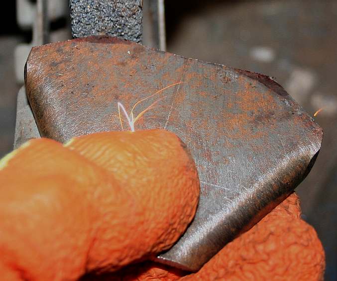 SHAPING - Use the coarse wheel on a bench grinder to pre-shape the radius of the steel semi-circle that was cut from the old gas cylinder. Wear a pair of gloves when grinding and protective glasses or goggles. Only rough shape, because when the three parts are welded together, the weld will take up a fair amount of play - and will need cleaning up anyway.