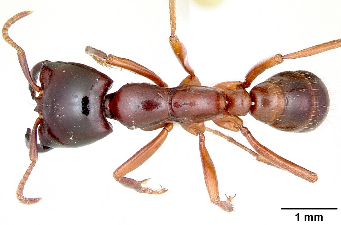 DINO ANT - This is the head of Dino ponera, one of the world's largest ants found in the Americas. The eyes are placed more forward than most modern social ants, but they are small compared to the Bulldog ant. Where the jaws are not so long or thin, the head has the ancestral characteristics of their Australasian cousins.
