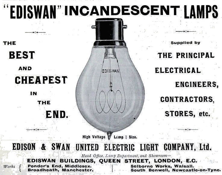 It all started with incandescent electric light bulbs. Once carbon filament electric lamps were commercially available, the demand for electricity followed. All down to two men, Thomas Edison and Joseph Swan. Who, eventually joined forces, to form the "Ediswan" Electric Light Company.